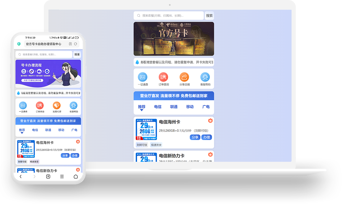 专注为号卡行业各级代理商提供分销解决方案,助力每一位号卡行业的辛勤工作者有一个便捷、独立的增量工具。